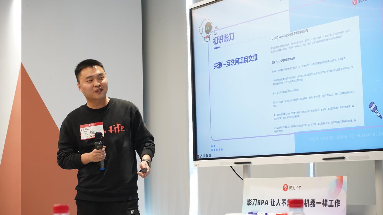 影刀CEO十布亲临现场,分享了影刀企业思考。战略部负责人腾飞介绍了《伙伴计划》,为开发者提供了更多展示个人技能的机会。该汗带来了 AiPower 产品分享,AI与RPA深度结合的前沿思考,激发了大家对未来技术趋势的无尽想象;剑心详细解读了影刀官方应用的技术实现;此外,老朋友远方老师也分享了RPA助力开发者们的成长与突破,启发了在场的每一位。