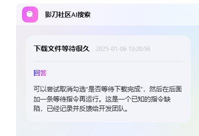 使用下载文件指令,有时候明明文件已经下载完成,但是依然等待很久。官方也说了,是个bug,正在修复中。