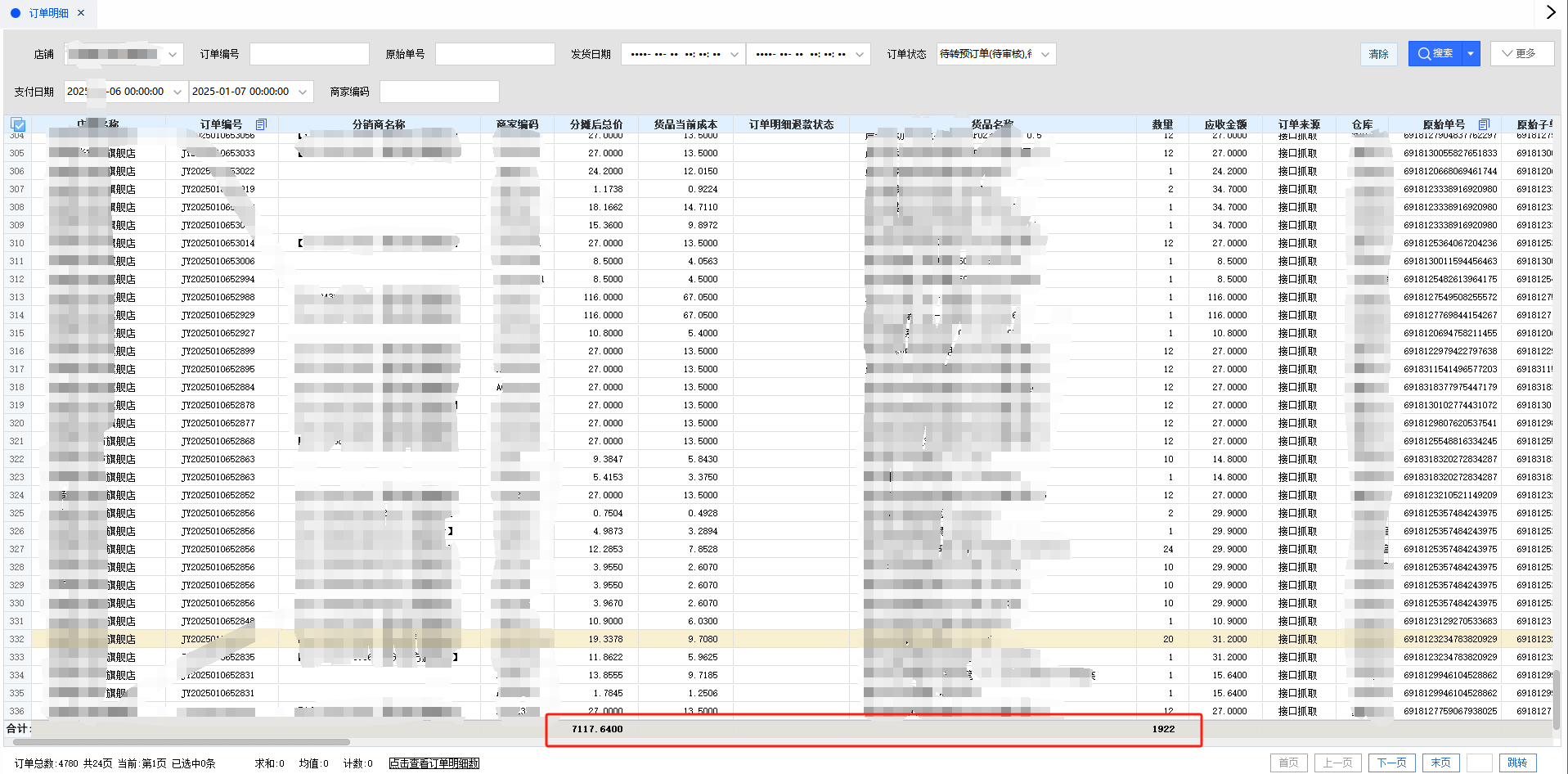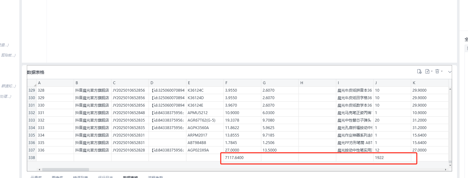 wdt daily 统计销售数据 > 主流程 > 行6: 旺店通多页连续表格数据抓取