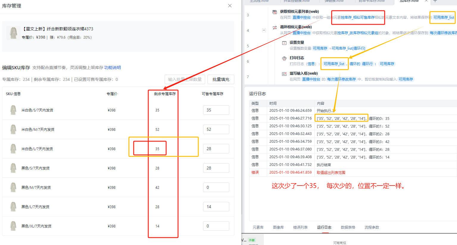 获取相似元素列表的时候, 不定的会出现,获取的文本,缺失一行的内容。缺失的位置不一定一样。