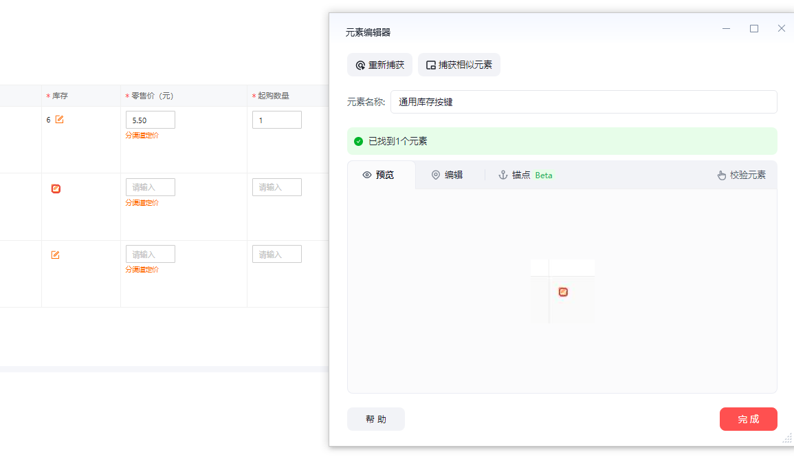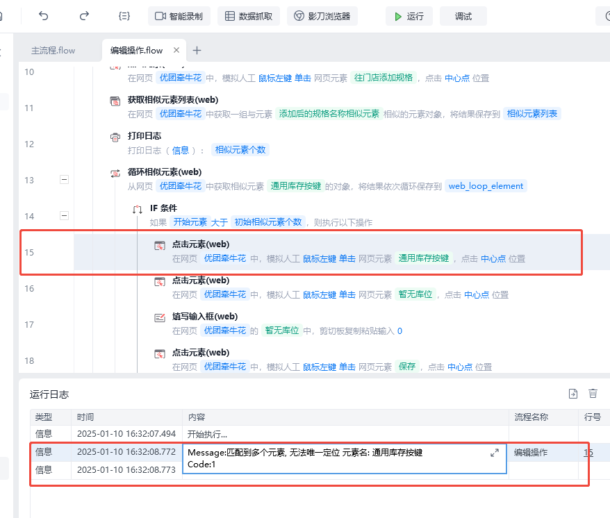 如果使用旁边的捕获相似元素捕捉的话在执行动作中无法找到唯一那个元素并且修改进行循环了,怎么可以让其他的都获取到啊