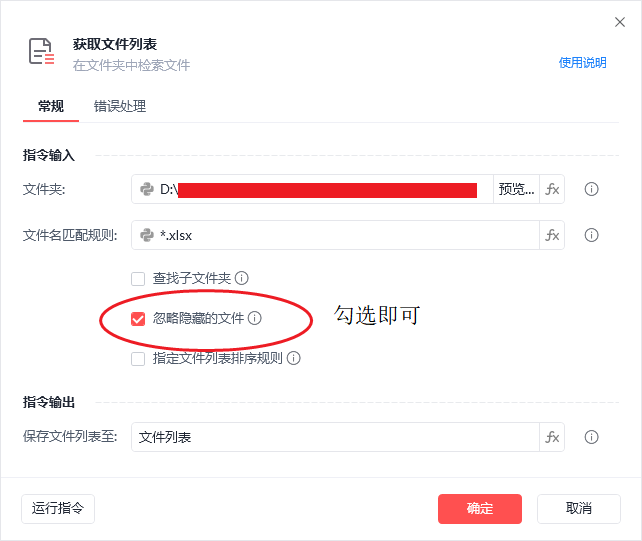 【解决办法】获取文件列表的指令勾选下面的选项即可。