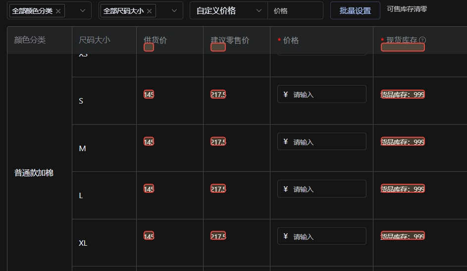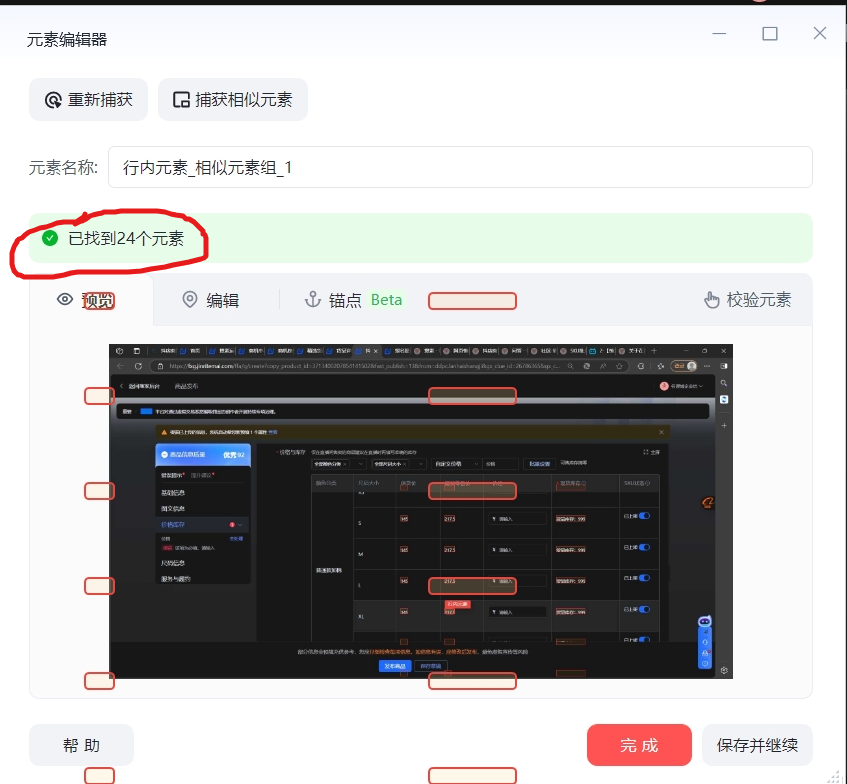 抖店后台对“精选货源”提供的商品进行新建商品编辑,希望根据供货价和建议零售价填充销售价格,通过获取相似元素列表(web)获取数据失败,希望提供解决方案