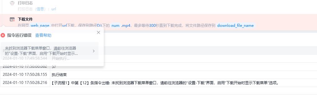 xbot.errors.UIAError: Message:未找到浏览器下载菜单窗口,请前往浏览器的“设置-下载”界面,启用“下载开始时显示下载菜单”选项。