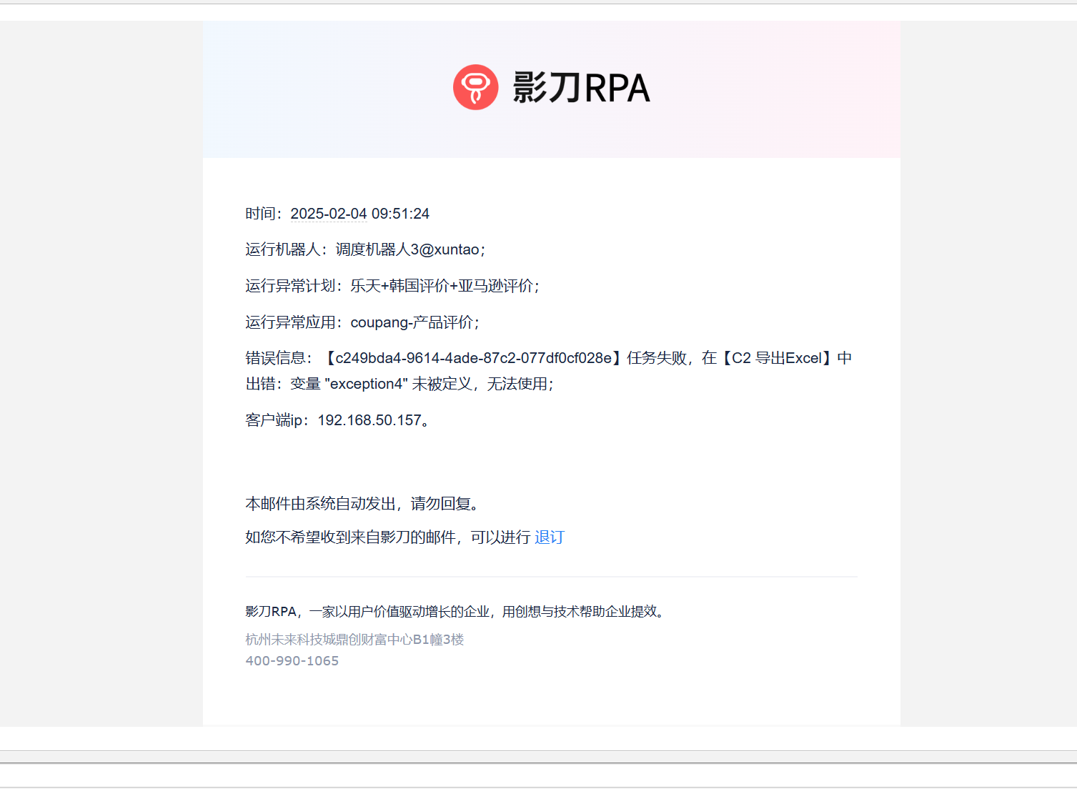 异常通知的邮件定位问题异常,并非是真正的问题