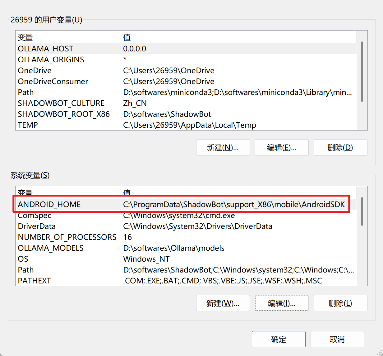 值为 C:\ProgramData\ShadowBot\support_X86\mobile\AndroidSDK