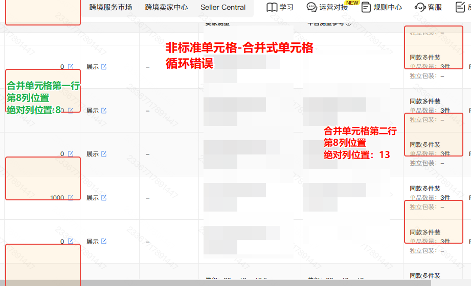问题简述:标准单元格一行只有一个数据,内容循环没问题;非标准单元格(合并单元格)第一行循环内容正确,第二行内容偏移。