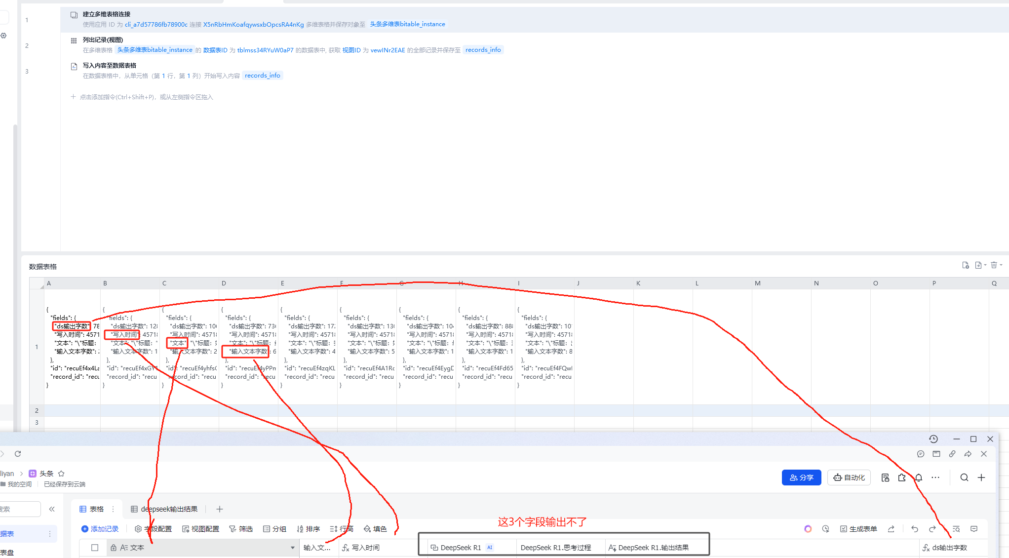飞书多维表格RPA列出数据表/视图/记录都获取不到字段捷径中心生成的字段
