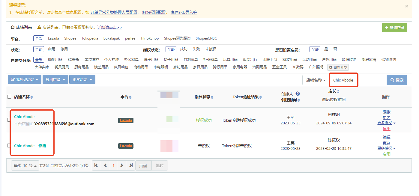 通过搜索搜索出列表内有两个含有Chic Abode,如何点击我需要的这个Chic Abode 后面的编辑