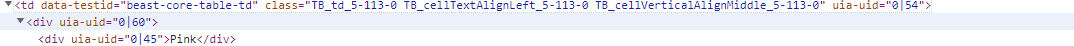 在同一个tbody节点下面的,有多条tr行,我是想获取tr行下面的td节点下面的颜色,比行图片中Green和pink,但是中间的div节点不一样,我找相似元素组找不到,就不知道该如何获取这个颜色的信息了