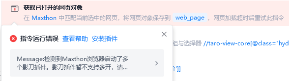 傲游浏览器(版本号版本7.3.1.2600(64 位)0126 18:50),明明只安装了一个插件,运行的时候总是提示启动多个,报错误故障,同样的代码谷歌浏览器,360浏览器均正常。
