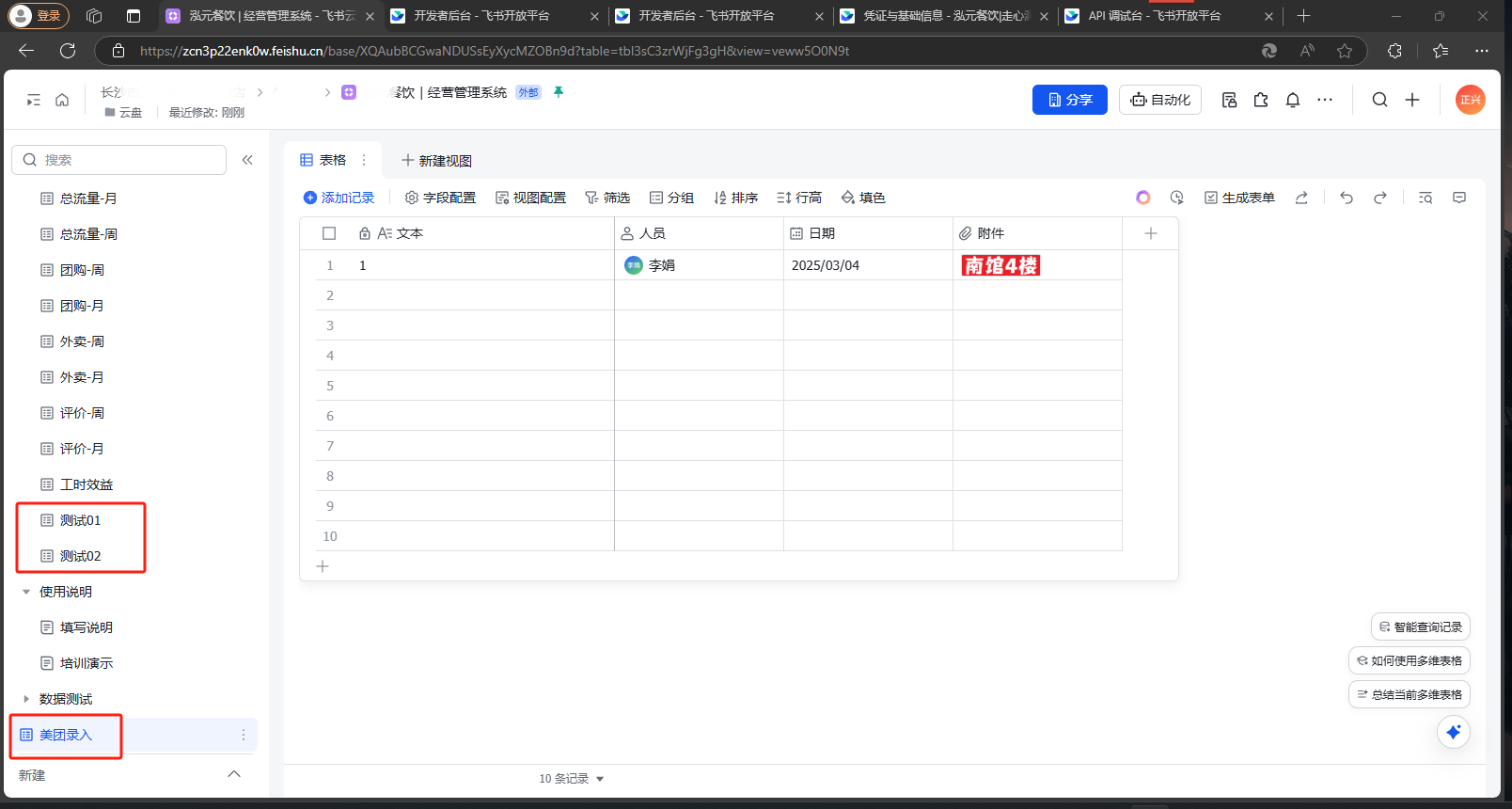 在用影刀自定义指令中“建立多维表格连接”后,多维表格中的部分数据表读取不到。请大佬们指点一下,问题到底在哪里?非常感谢☕️