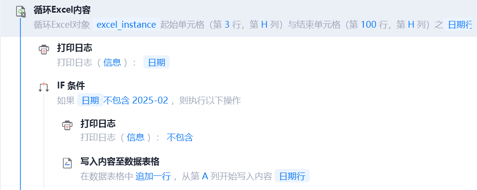 表格里有一列是各种日期,想要实现仅保留2025-02开头的数据,同时把不符合要求的数据全部删掉,读取单个单元格的时候可以正确判断单元格内容是否包含”2025-02“,但是循环excel内容读取之后做出的判断就不正确了,请问是为什么呢?