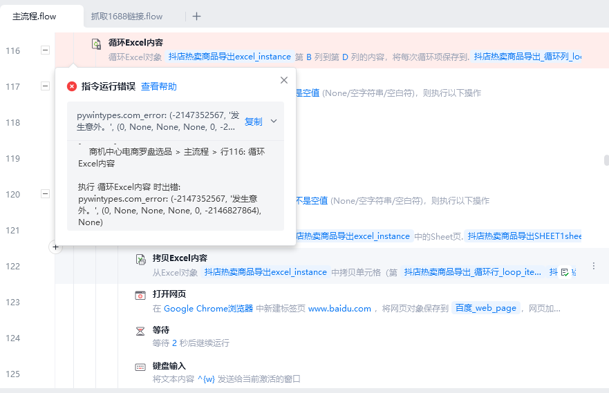 1.在循环结尾处重新打开激活打开“A-1”Excel,循环报错