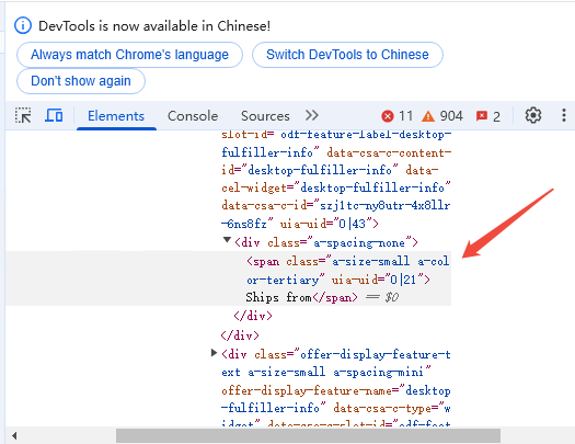 亚马逊 抓店铺名,以前的元素失效了,看源码感觉两个是一样的