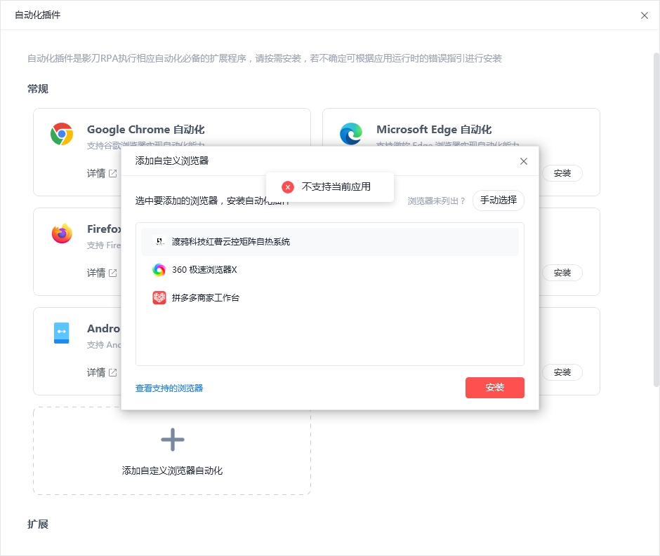 影刀自定义添加浏览器,无法添加比特浏览器,提示不支持,怎么解决