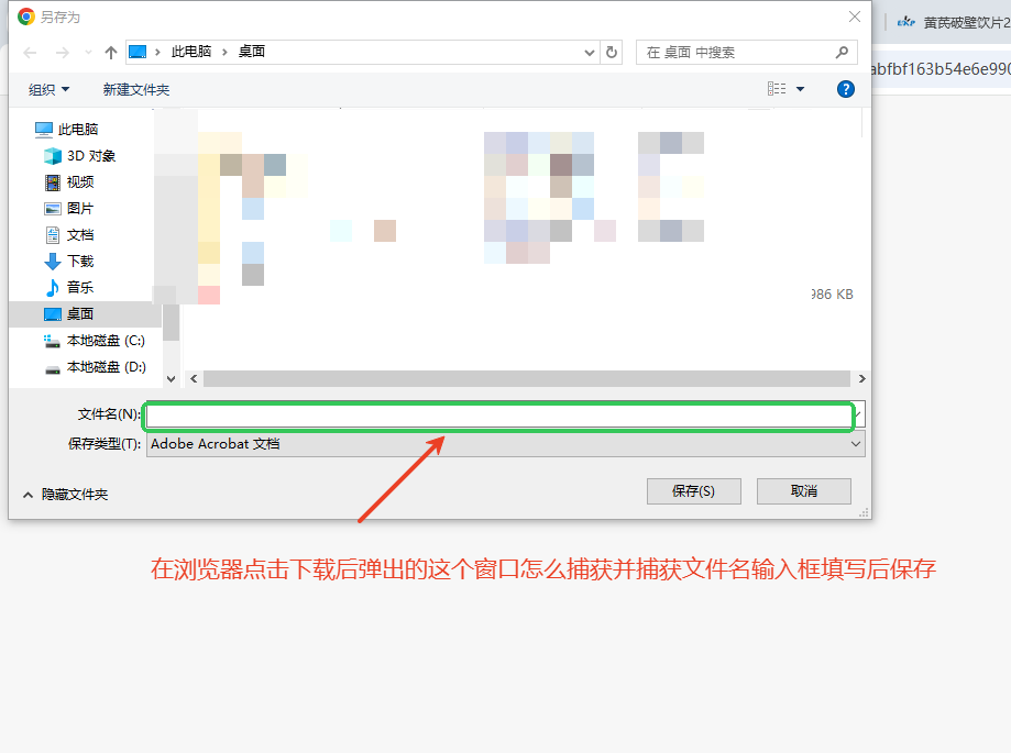 在浏览点击下载后如何捕获窗口然后进行输入文件名保存