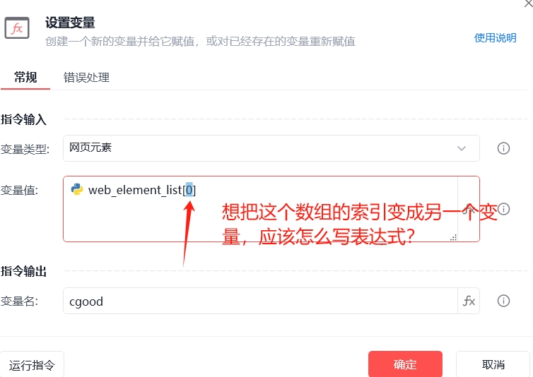 网页相似元素组。。我用具体数字当索引就可以访问,如果将索引换成变量就无法访问,请问是不是表达式应该怎么写?
