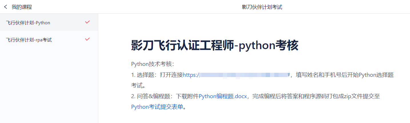 选择题直接在影刀学院进入链接考试,50或60道选择题,基础的python知识考试。考试约90分钟。