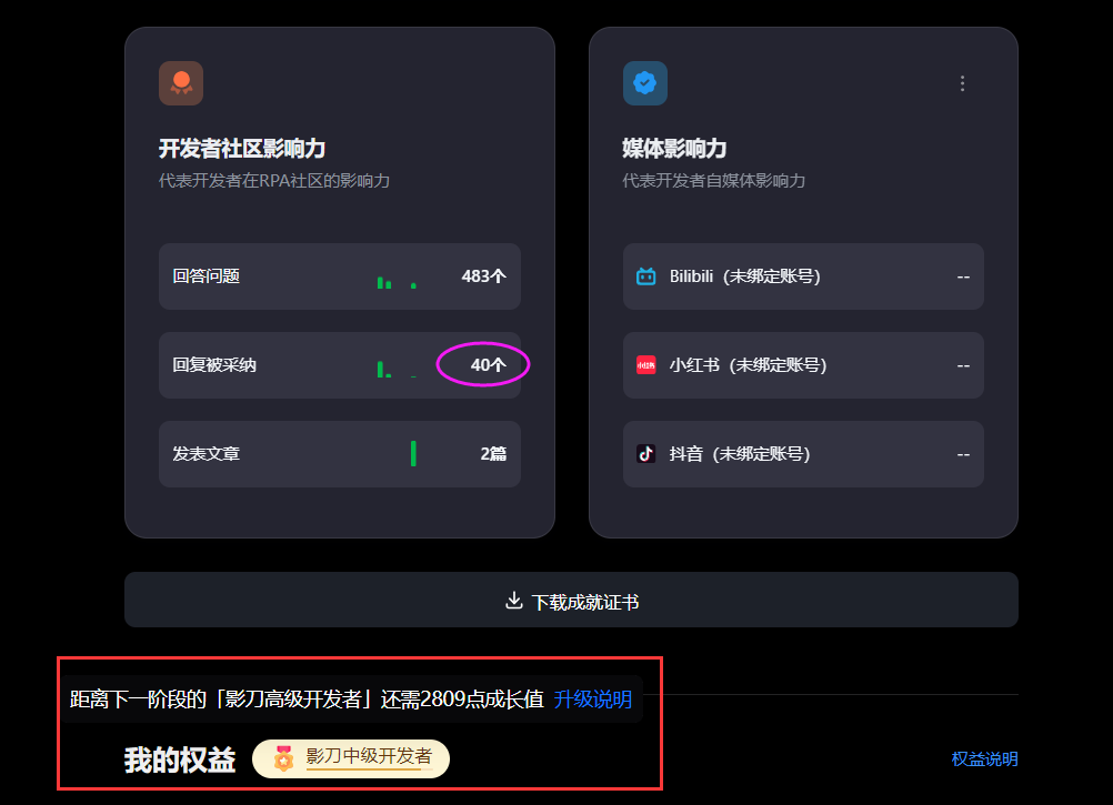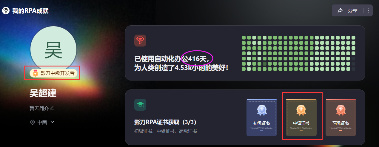 需要说明的是:影刀中级开发者和中级证书不是一个概念,需要区分开来。