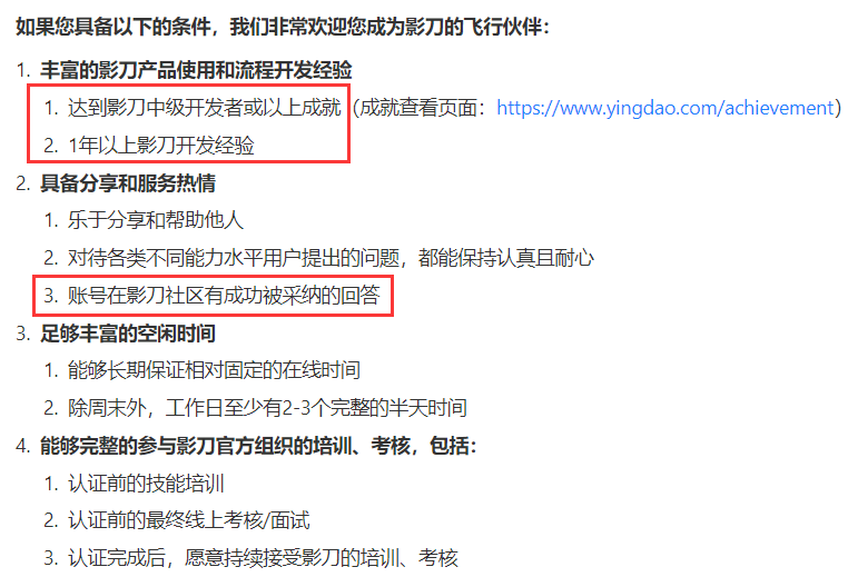 一年以上开发经验和影刀中级开发者,这两个条件还是需要时间来沉淀的,所以说想参与还是有一定门槛的。