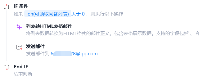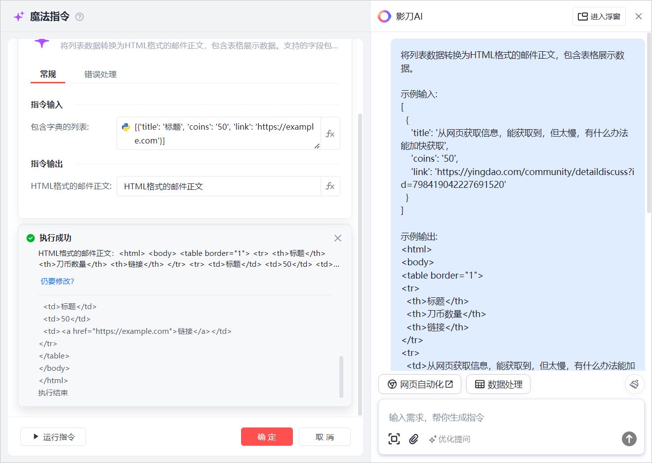 获取到可领取问答列表之后,使用魔法指令将标题、刀币数量、链接等信息生成html格式的邮件正文。