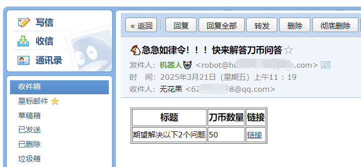 加一个判断,如果捕获到有新的刀币问答,则发送邮件提醒。