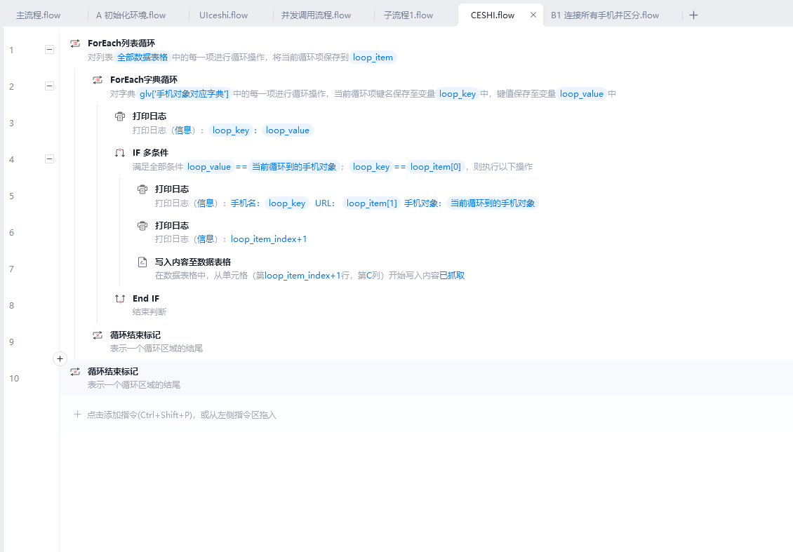 我想让A手机只执行数据表格中手机名称为A手机的链接,不知道怎么写