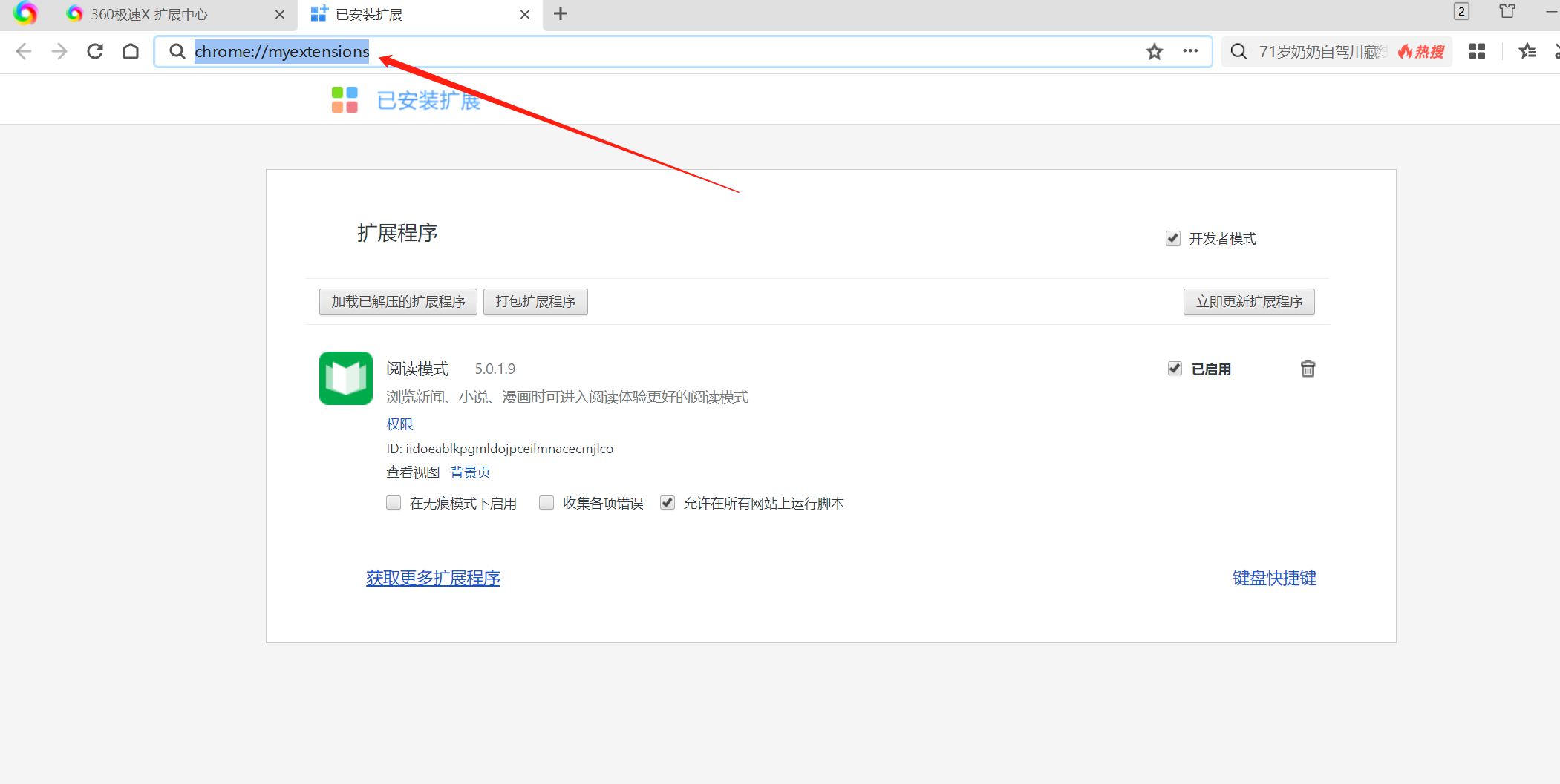 因为360极速浏览器X的内核也是基于Chrome的,所以这里我们可以采用安装chrome插件的其他安装方式