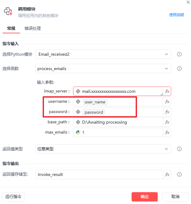 在调用python模块的时候,获取资产的密码会失败,验证后该资产在影刀内置的流程是可以跑通的,自写的python模块使用明文账号密码也是可以运行成功的,自定义模块使用资产获取就失败,是需要在模块代码里写入什么内容才可以获取资产吗