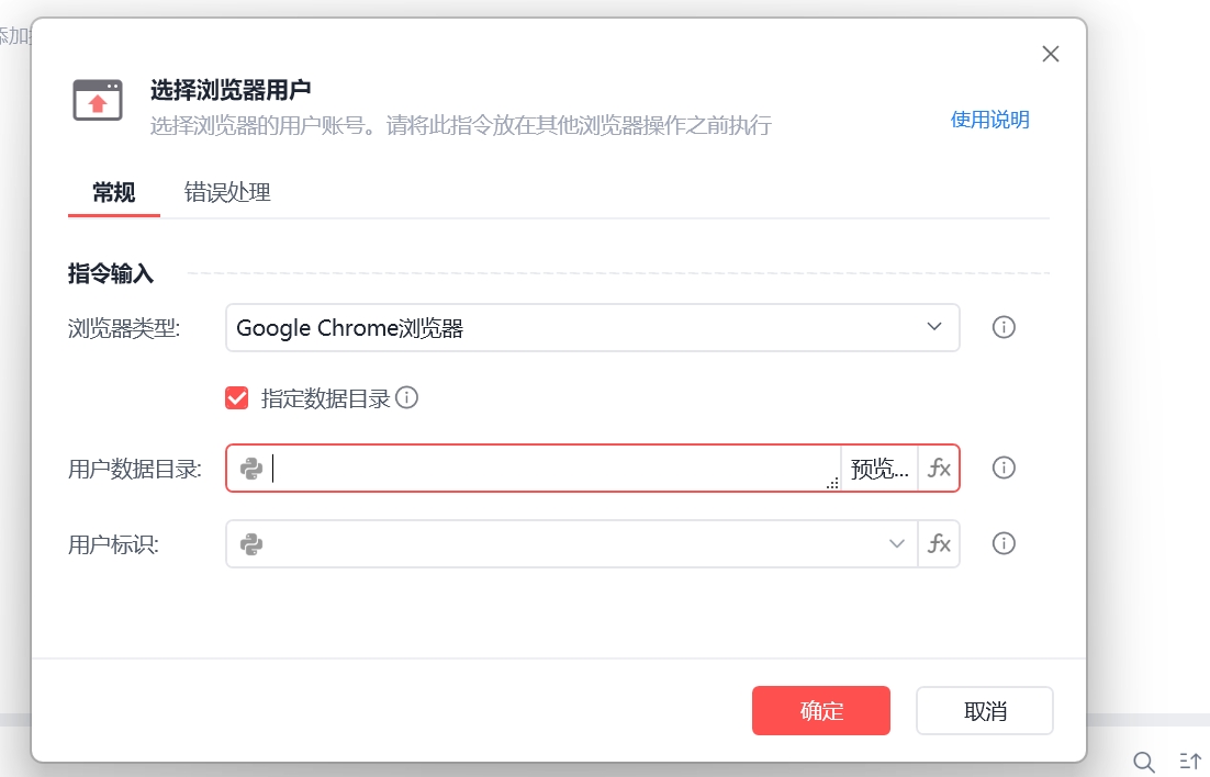 Message:检测到 Google Chrome 浏览器启动了多个用户环境,请使用“选择浏览器用户”指令指定目标用户