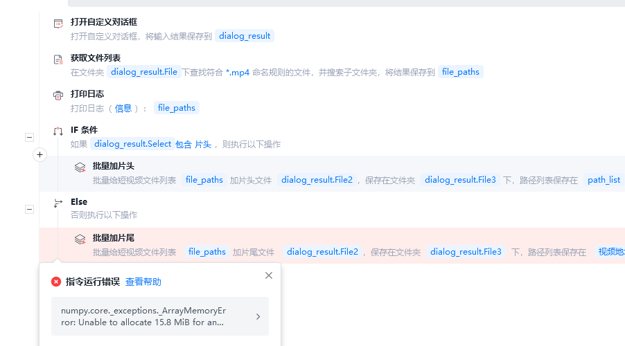 视频操作操作 > 批量加片尾 > 行1: 调用模块
