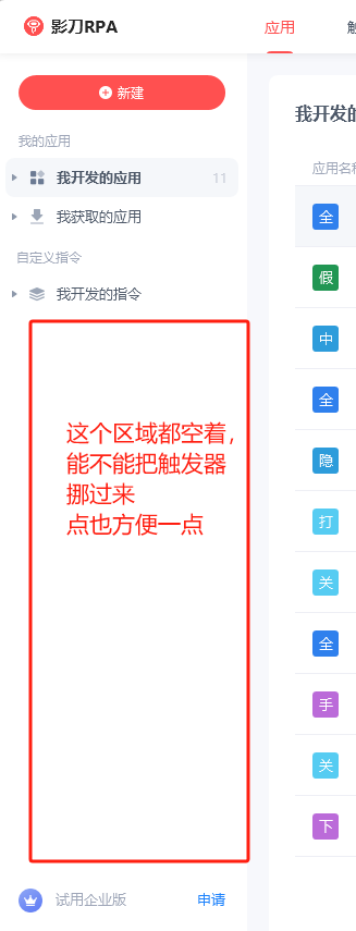 关于应用界面,建议把“触发器”和“应用”合并