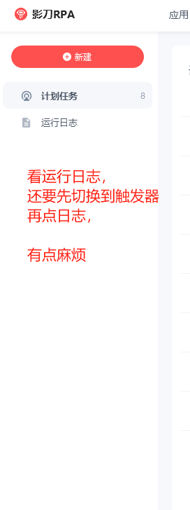 “应用“下面有大片的区域空着,能不能把“触发器”挪到“应用”下面”,每次看运行日志,都要先切换到触发器再看运行日志,有点麻烦