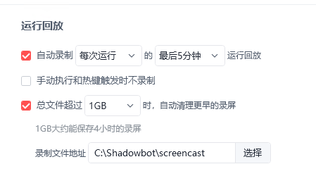 改成完整录制回放也是一样,手动执行的时候完整回放只有1秒的视频,所以只能设置最后五分钟,设置最后一分钟的话报错只能录制开始的一分钟,报错阶段录不到内容;
