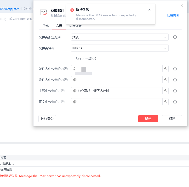 QQ邮箱获取邮件报错