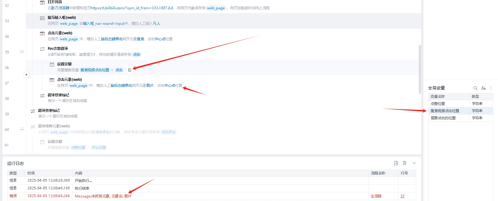 设置全局变量或者循环相似元素,然后依次点击,总是识别不了,但是每次校验元素确实正常