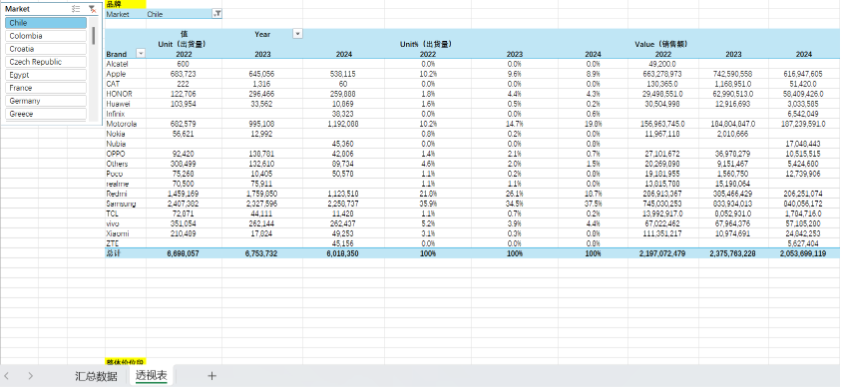 下面分别是运行指令、新建透视表的配置、数据源和透视表模版的贴图,运行指令可以新建出第一个Croatia的sheet,后面其他Market都没法继续新建,请大神帮忙看看