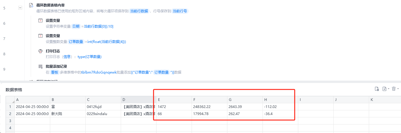 下面的截图是 尝试将E列的数据导入到多维表格