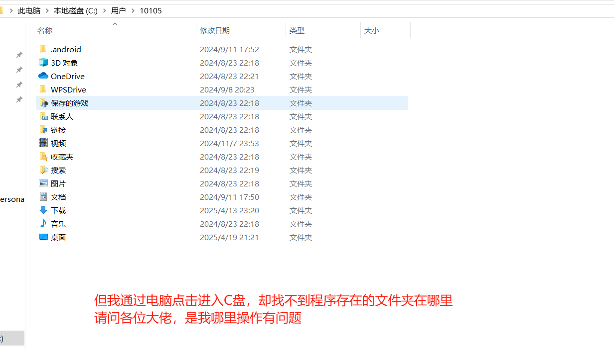 但是我从C盘进入想要找到这个程序文件位置,却找不到了。