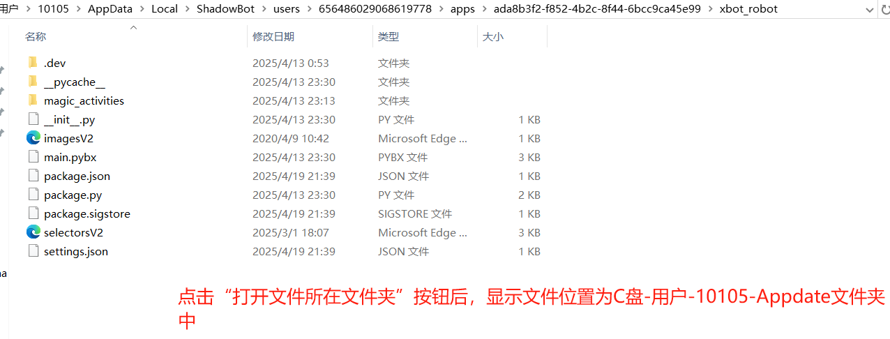 我用的方法:进入影刀,右键点击程序名字,然后点击“打开文件所在文件夹”就可以看到程序文件在C盘的某个地方。
