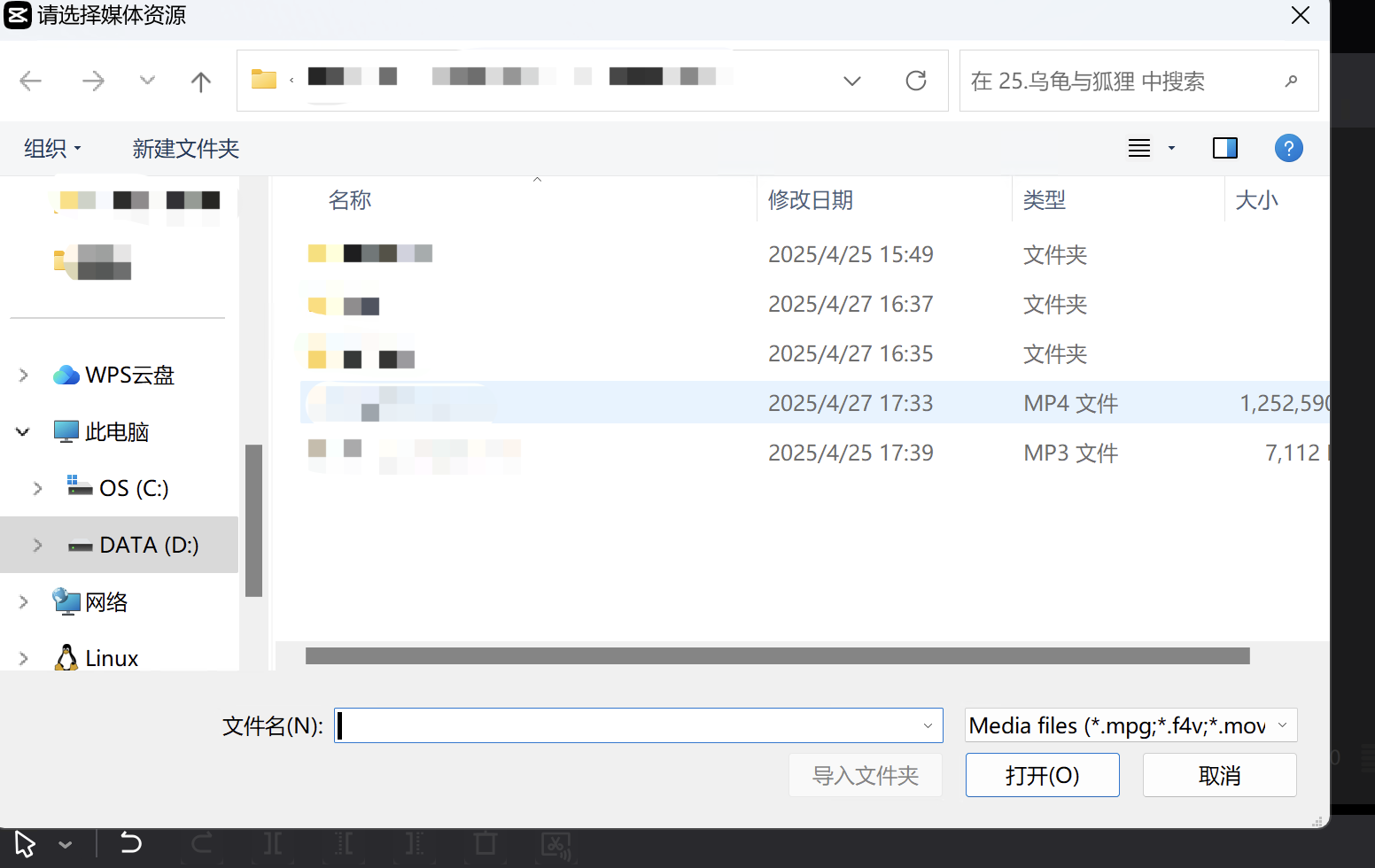 点击导入后,弹出选择文件对话框,选择文件