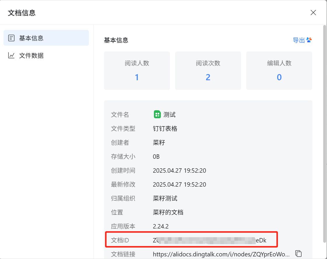 以上是某文档链接,其中标黄的部分就是表格ID