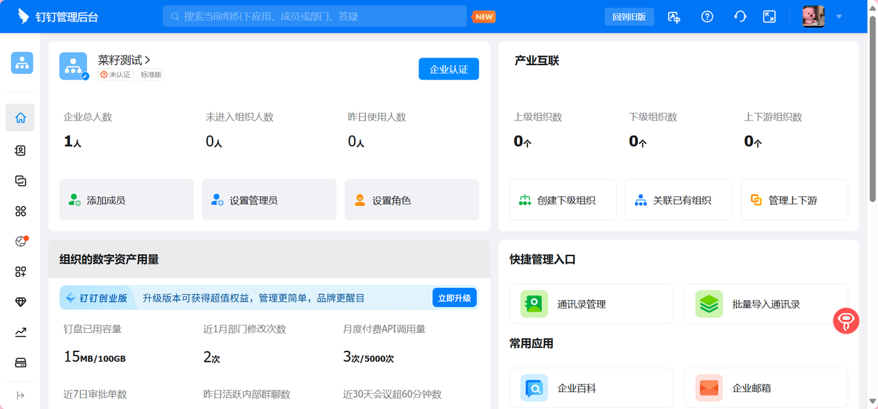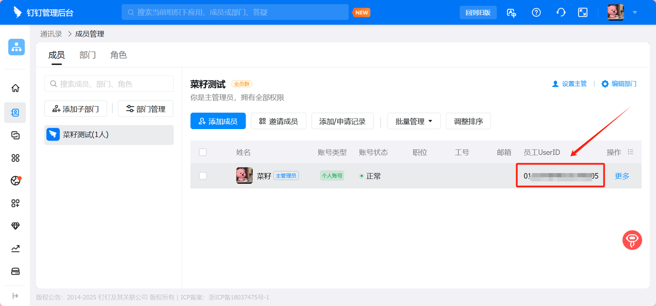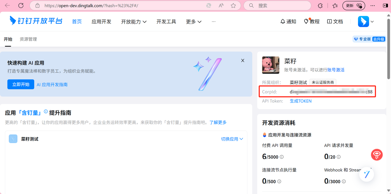 进入钉钉开放平台:开发者后台统一登录 - 钉钉统一身份认证,即可在右上角可看到CorpId