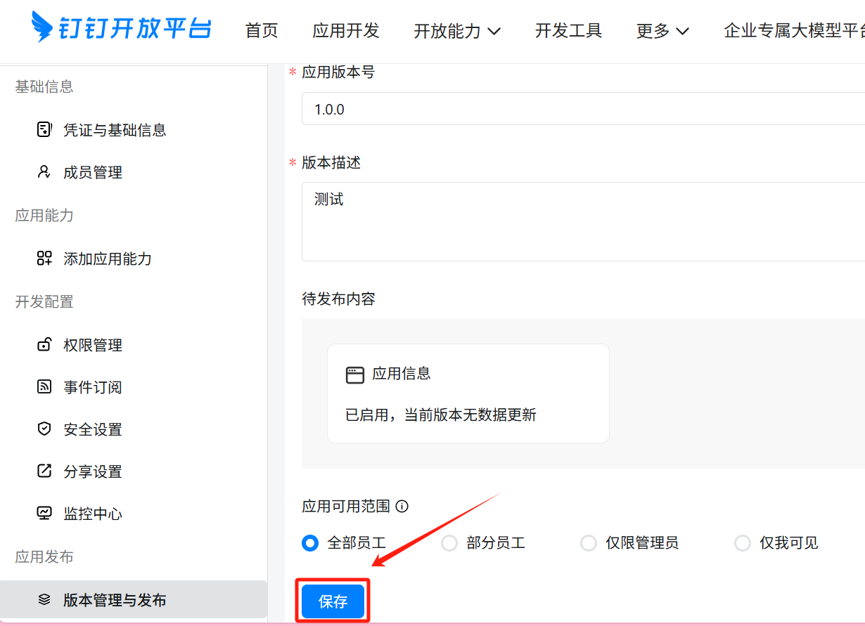 应用可见范围根据实际需求填写。