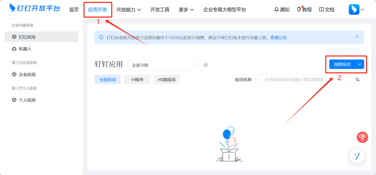 如果不是管理员无法直接发布应用,需要企业的管理员审核通过才能创建成功。