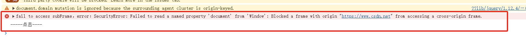 (无法访问子帧,错误:SecurityError:无法从“Window”读取命名属性“document”:阻止了具有原点的帧https://blog.csdn.net”访问跨原点帧。)