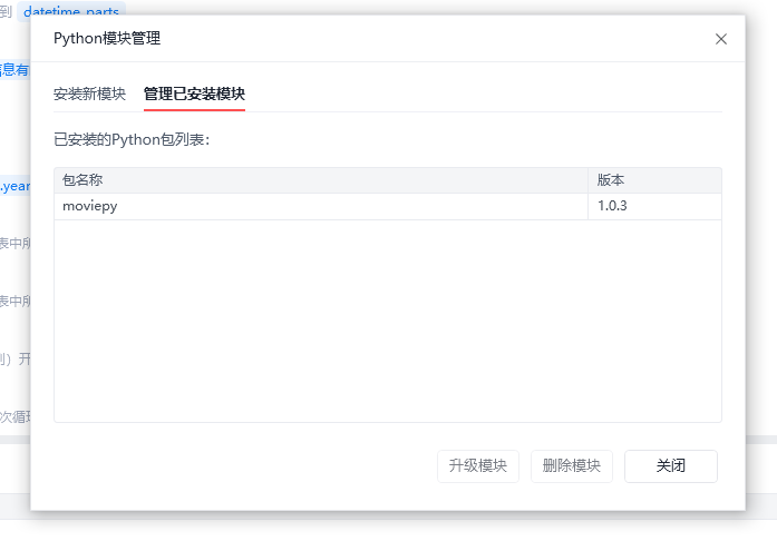 ◦更新python 3.7 升级为python 3.10引擎之后,影刀报错,卡死了,强制退出后重开 。读取维格表 报错 会先显示No module named 'moviepy' 安装python包之后,又显示 No module named 'moviepy.editor'