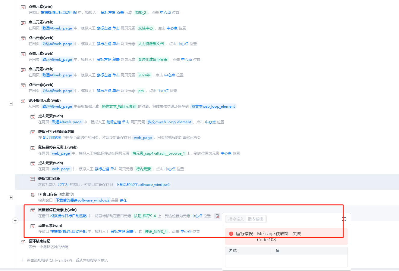 想在网页上循环下载文件,可以另存为第一个文件,但是下载第二个文件时就获取窗口失败了。