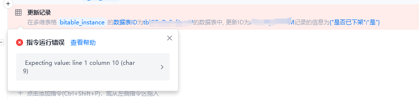 使用飞书多维表格的更新记录命令,会报这个错误。已经确认参数没有问题。
